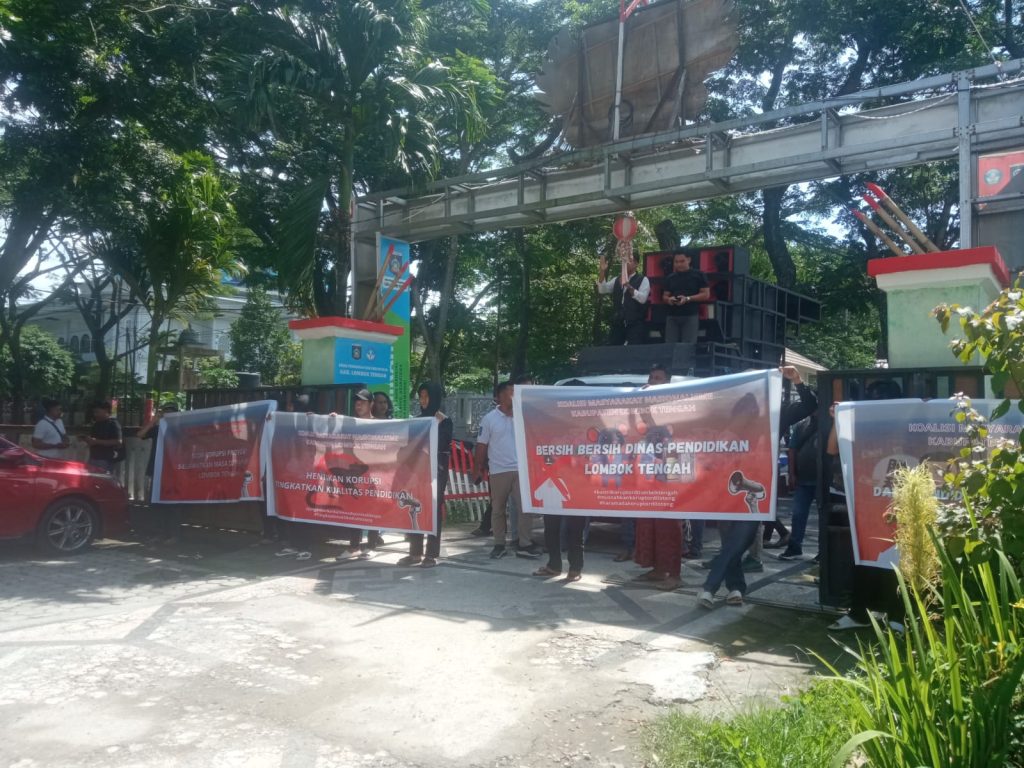 Aksi yang dipusatkan di Kantor Dinas Pendidikan dan Kebudayaan Lombok Tengah itu dimulai sekitar pukul 09.00 WITA. Puluhan massa hadir lengkap dengan sound system, spanduk, serta dokumen temuan proyek renovasi SD tahun 2024 dan 2025.